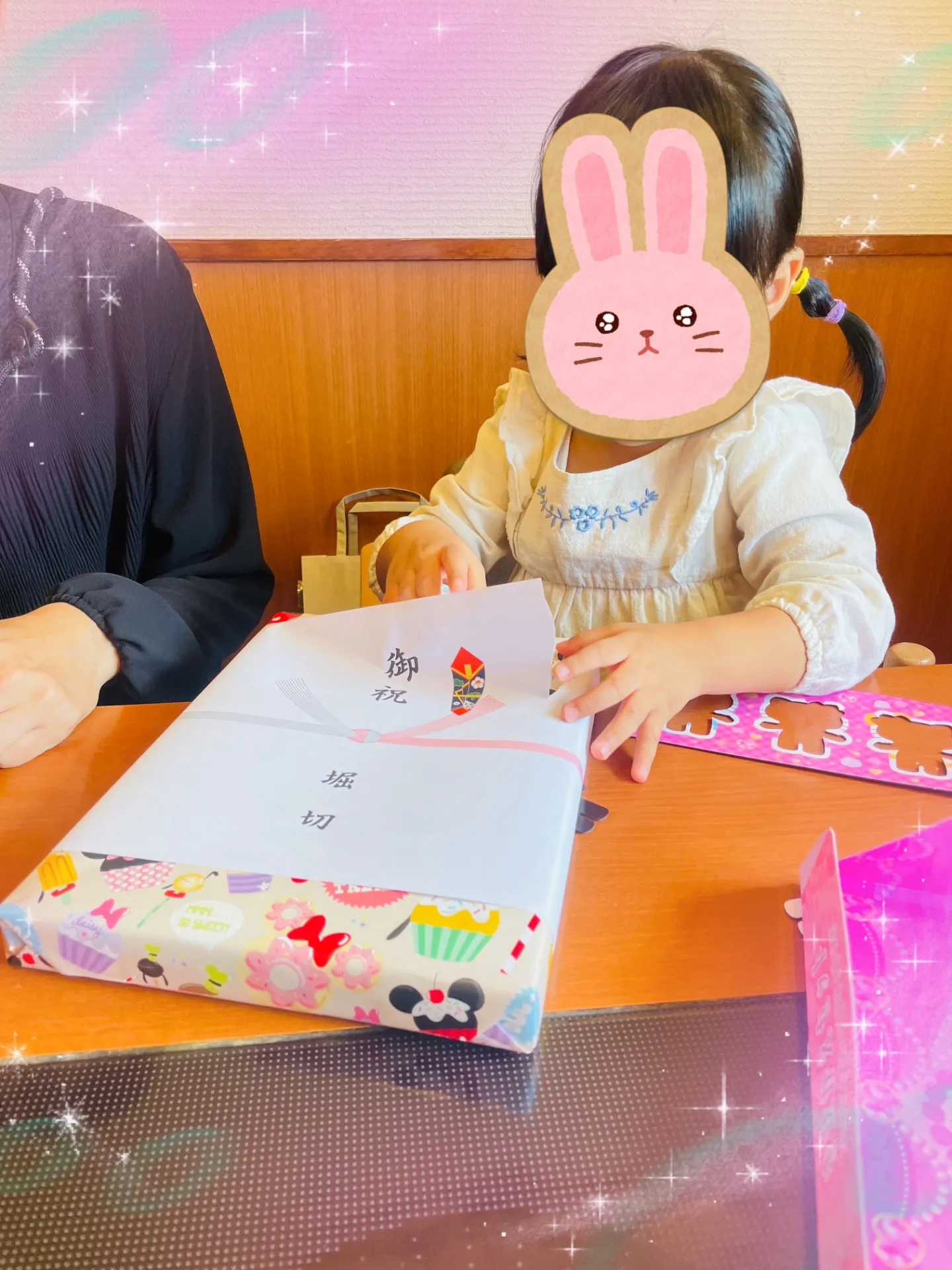 ママへのプレゼントの包装紙をびりびりっとさせてあげたらうれしそうにしていて